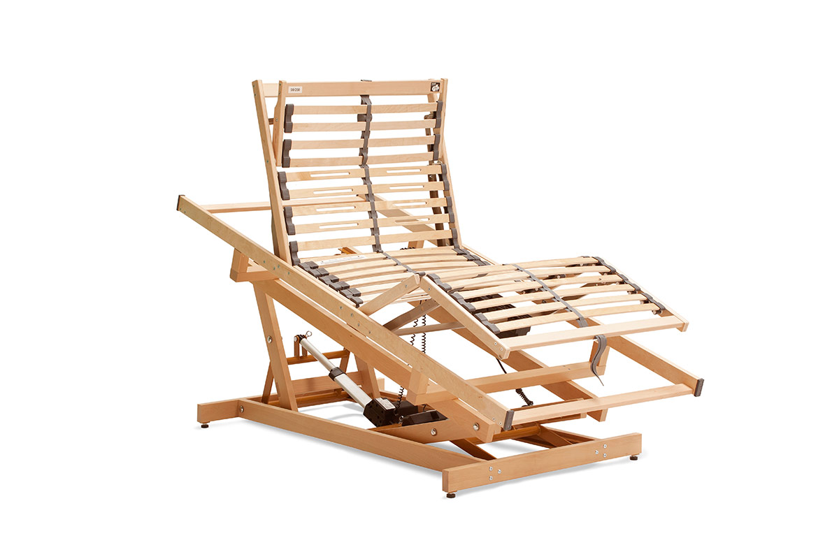 Die Hebehilfe aus Holz kann perfekt mit anderen natürlich hergestellten Lattenrosten kombiniert werden und lässt sich problemlos wie ein normaler Betteinsatz in der Höhe elektrisch verstellen. Die Liegefläche ist beim Betteinsatz „natura vital“ zusätzlich schräg einstellbar, wodurch ein erleichtertes Aussteigen aus dem Bett sowie eine bequeme Sitzposition erreicht werden kann. Zusätzlich kann der Bettenheber zur Pflege im häuslichen Bereich eingesetzt werden und integriert sich perfekt in vorhandene Einzel- oder Doppelbetten.