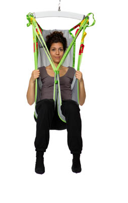 Der Patientengurt unterstützt den Patienten und eignet sich für fast alle Hebesituationen. Der Gurt kann sowohl im Liegen wie auch im Sitzen angelegt werden und ermöglicht auch den Transfer vom Boden aus. Die Kopfstütze bietet zusätzlichen Halt.